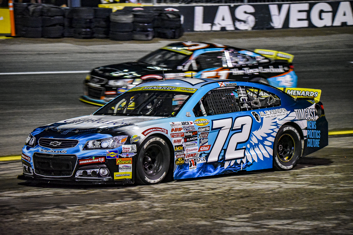 The day at the Las Vegas Motor Speedway Bullring was largely disrupted by the weather. Thunderstorms, wind, and rain prevented the qualifying session from taking place and delayed the start of the race by more than two hours. But once the green flag waved, the race was intense, with numerous lead changes, crashes, and an exhilarating finale.