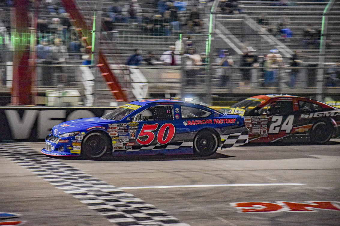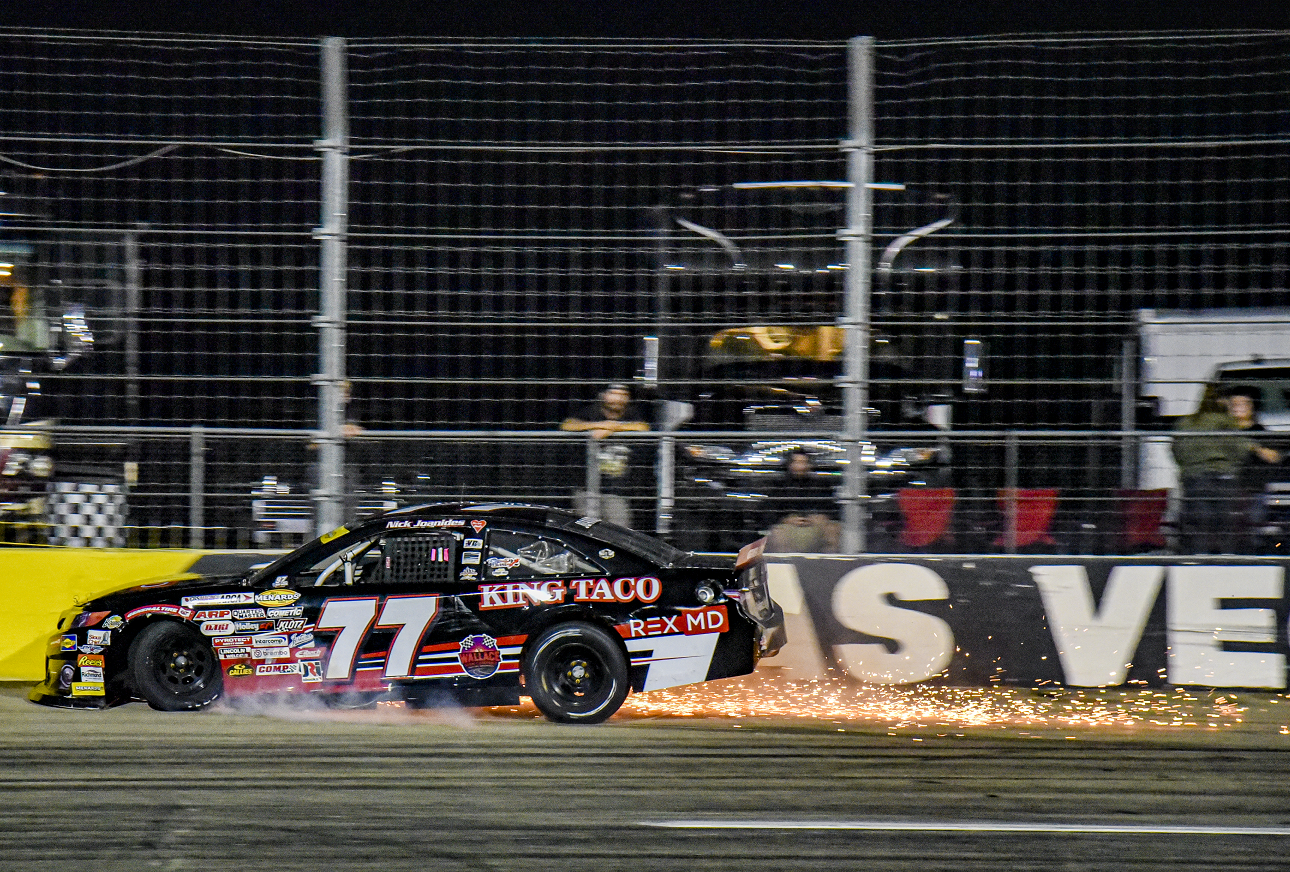 On lap 90, Nick Joanides went straight into Turn 3 and hit the outside wall very hard after breaking a right front ball joint. Unfortunately, in the impact, his left leg hit the steering column. After a visit to the medical center, Joanides was left with a double fracture of his left leg and knee, which will prevent him from competing in the next race in Phoenix. Gavin Ray received the free pass. Note that Bryce Haugeberg returned to the track on lap 99, 64 laps behind.