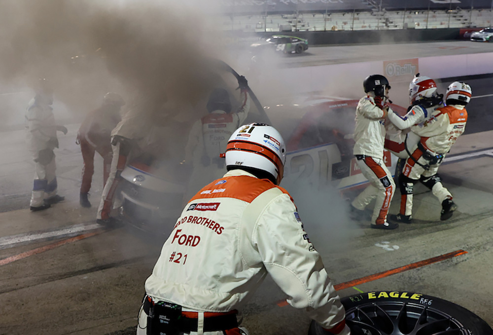 Josh Berry, knocked out of the Round of 16 after Bristol, saw his night go up in smoke when rotor trouble likely sparked a fire. He steered the No. 21 Ford to pit road with smoke billowing from the right-front wheel well and later pointed to the tires as the culprit.