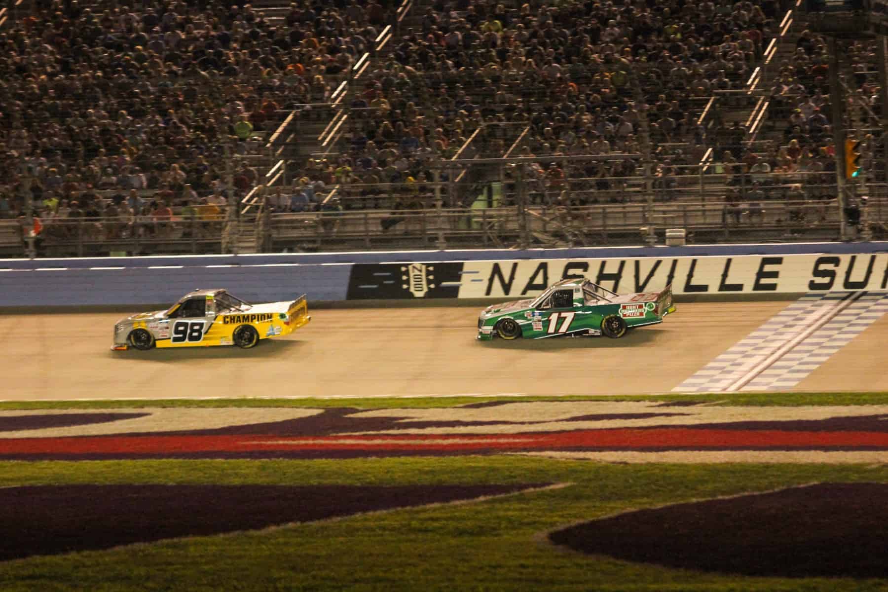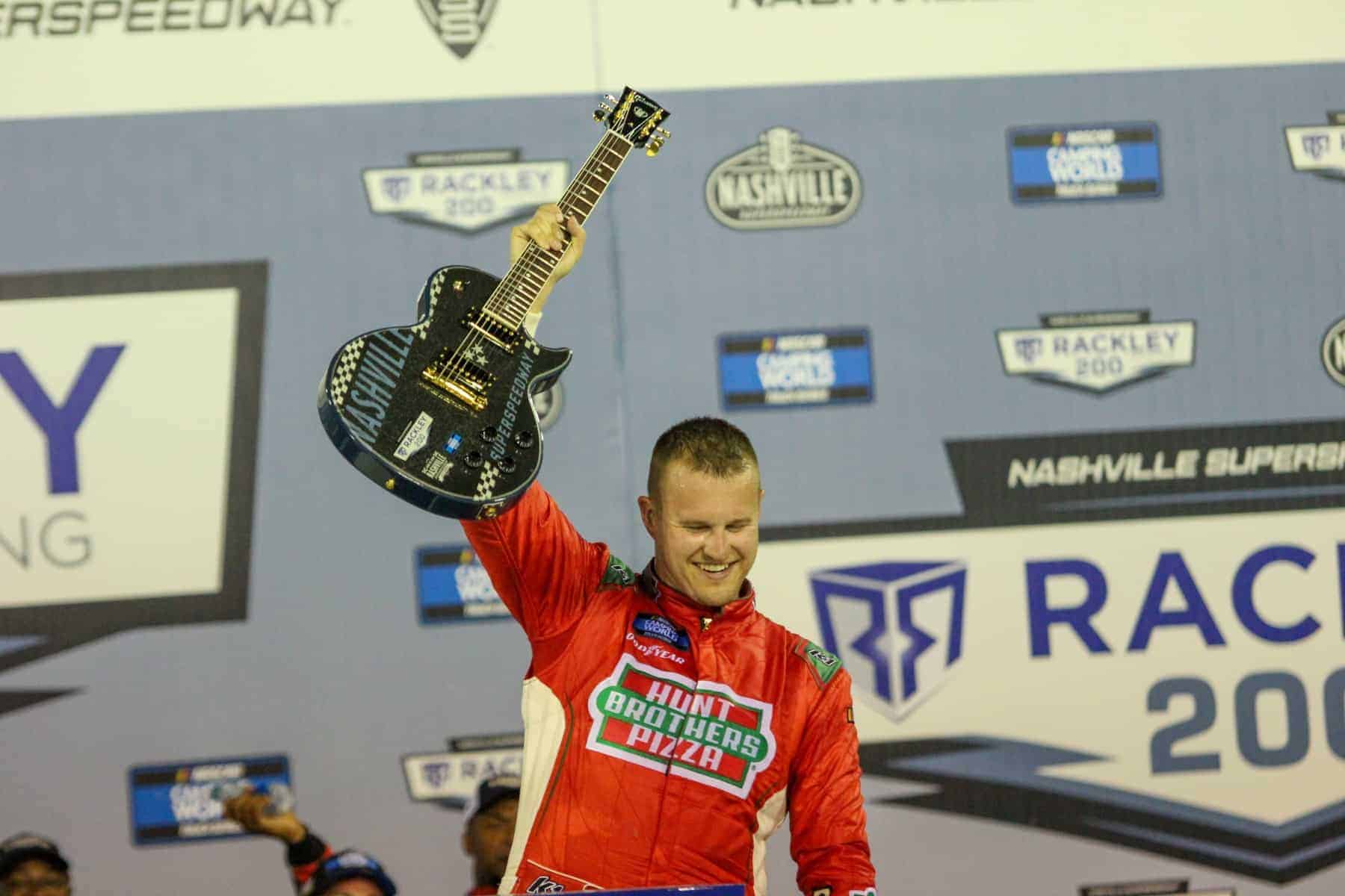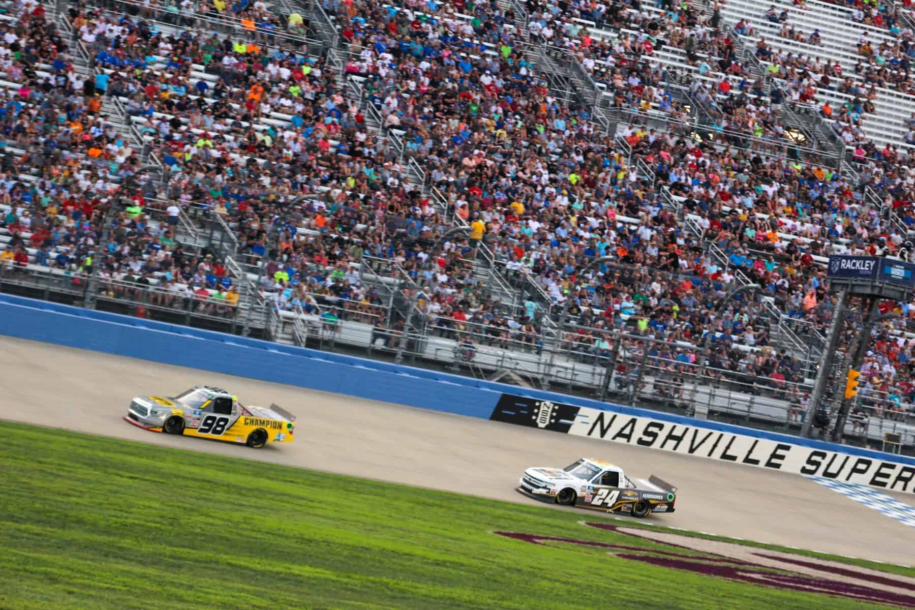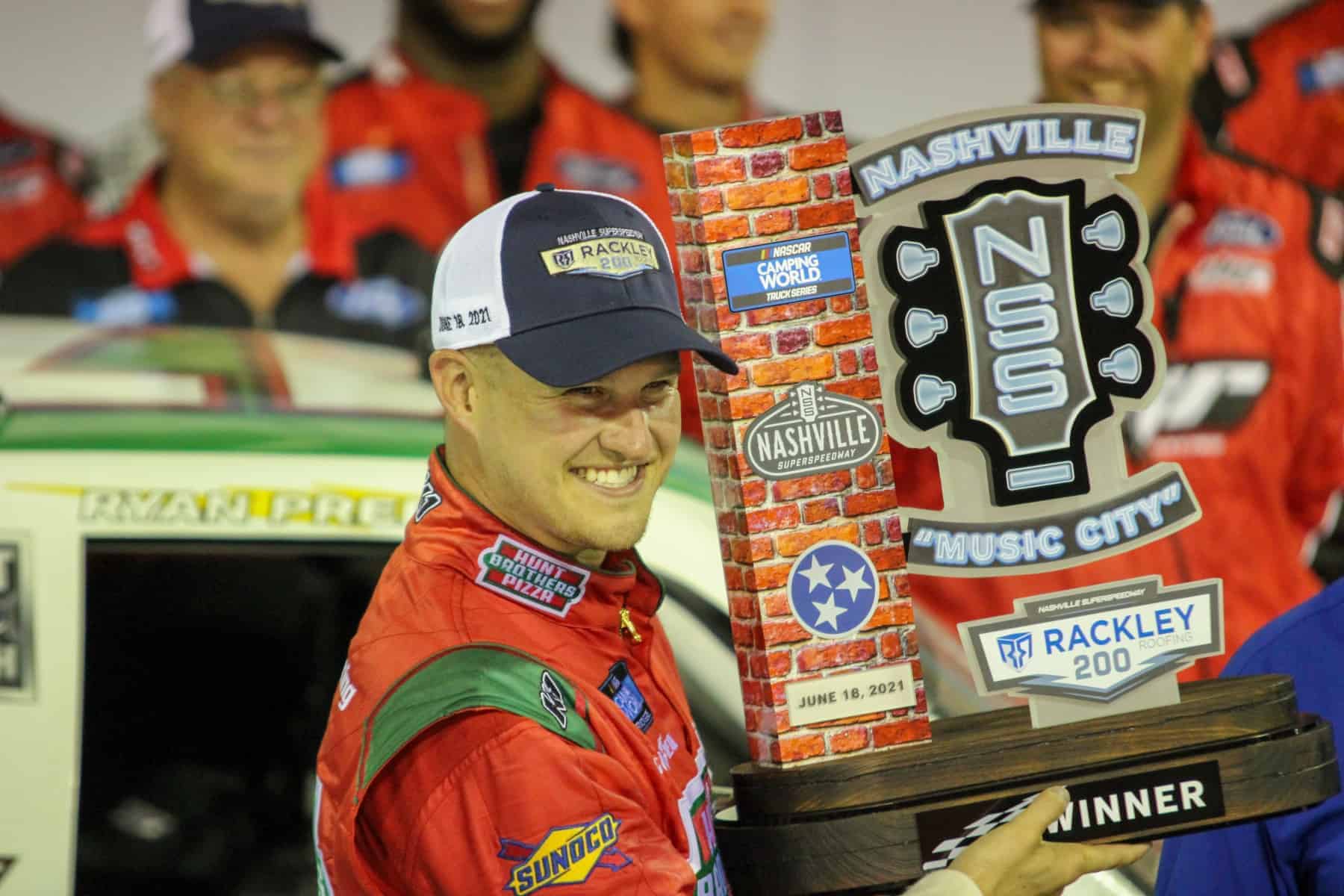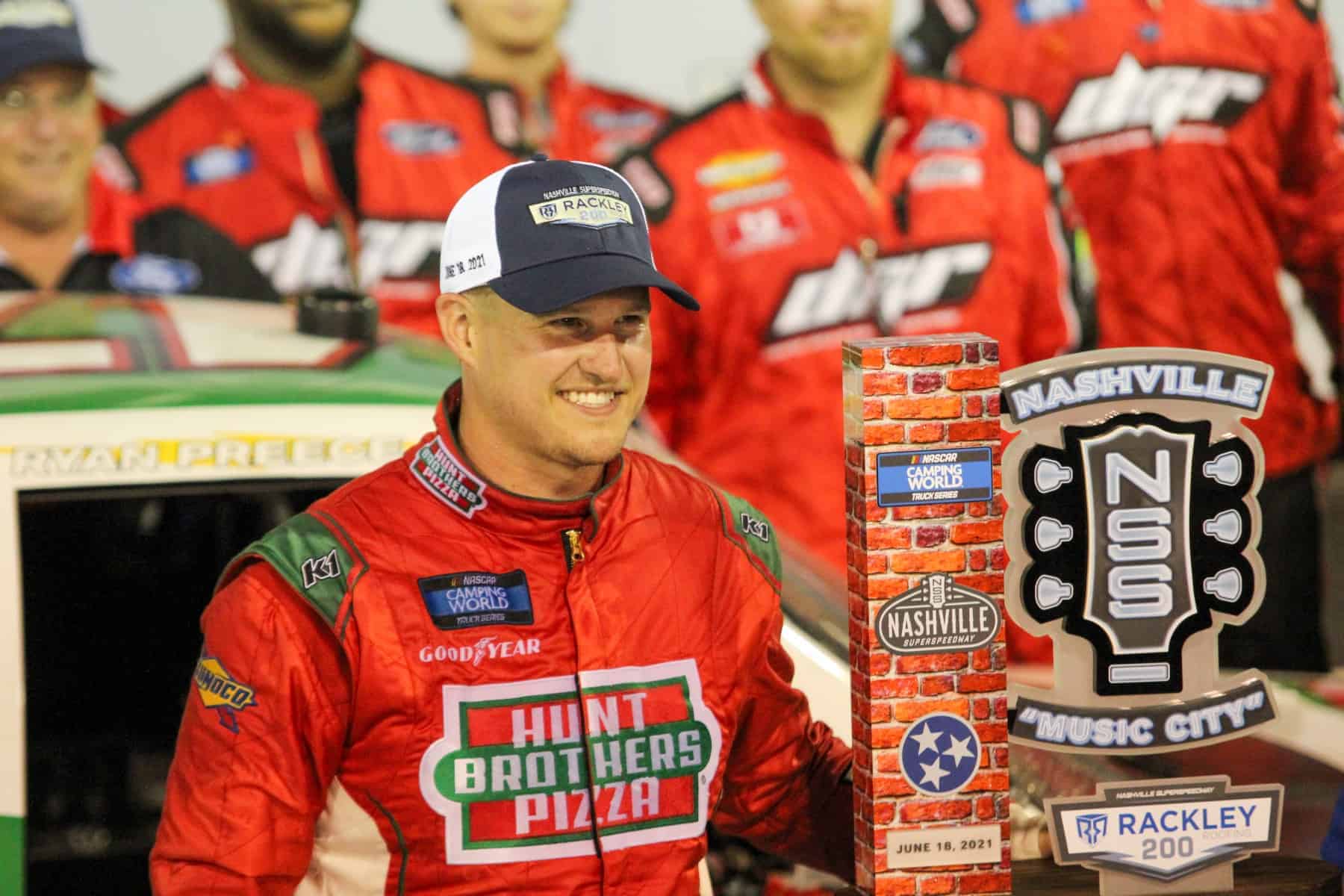 LEBANON, Tenn. — The 2021 Rackley Roofing 200 is the 14th NASCAR Camping World Truck Series race, and the first at Nashville Superspeedway since 2011. Derek Kraus earned his first career pole and led much of the race early on, but contact between him and Josh Berry would end his night. With seven laps remaining, Ryan Preece passed Grant Enfinger for the lead and went on to win in his Truck series debut.