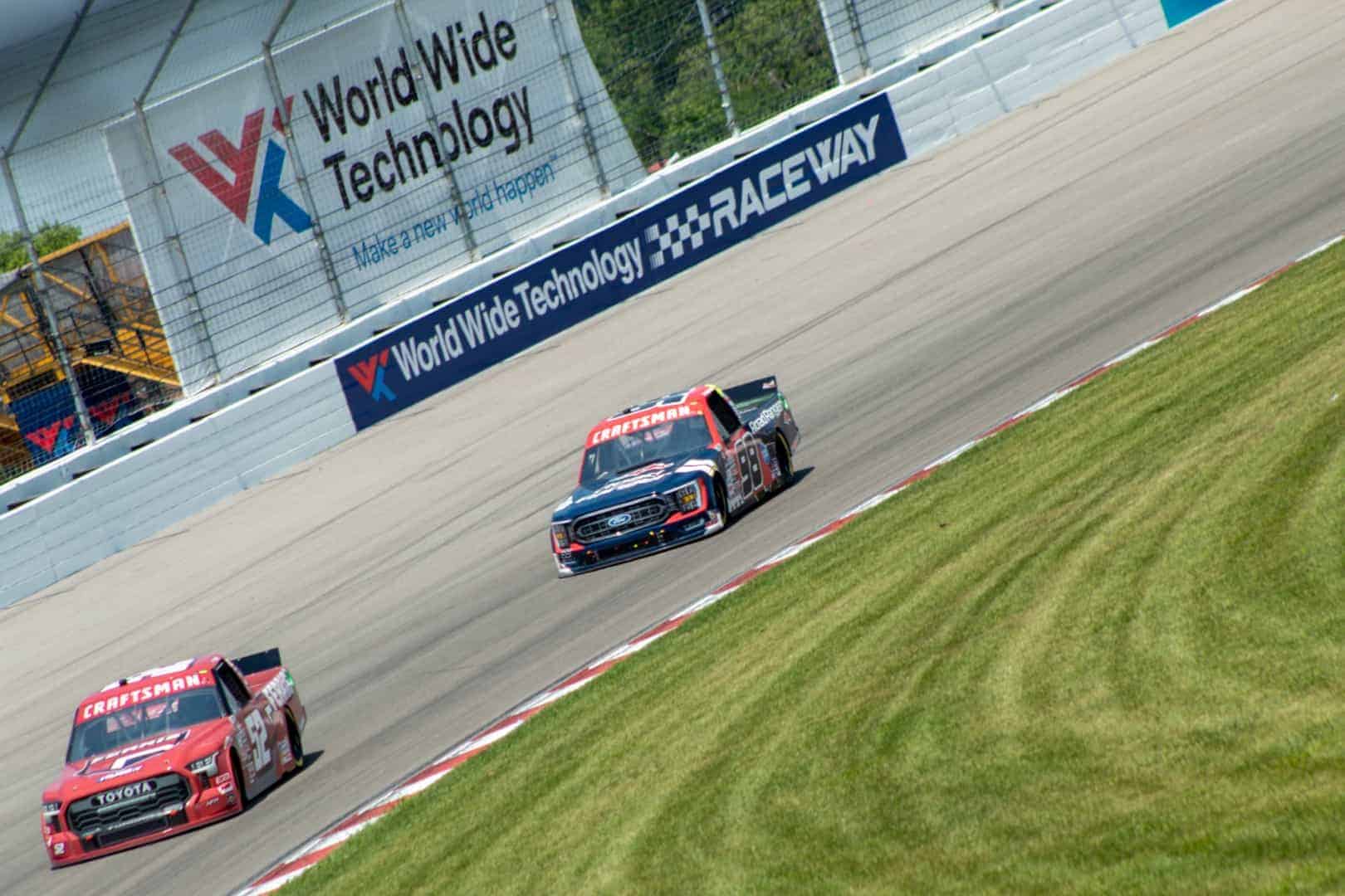 Grant Enfinger was able to hold off Christian Eckes for his second victory of the 2023 NASCAR Craftsman Truck Series season Saturday during the Toyota 200 presented by CK Power. Enfinger was able to survive the extreme heat and attrition Saturday in one of the wildest Truck races at World Wide Technology Raceway at Gateway in recent memory.